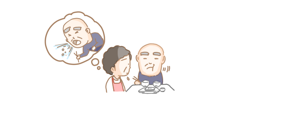 妻は「口に食べ物が残ることが多く不安」「どうすればよいかわからない」と不安の表現をしています。