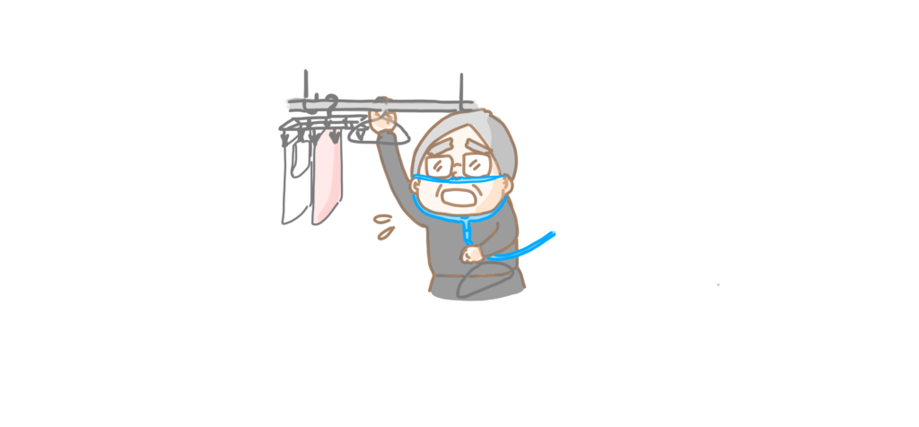 「最近、洗濯物を干すときに息が苦しくて疲れるが、自分でできることは続けたい」