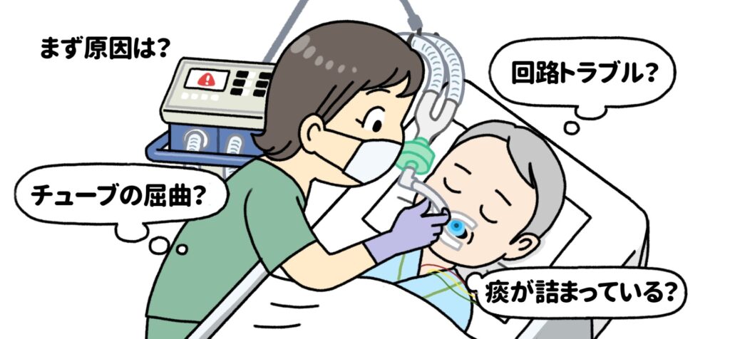 手術室やICUでは、人工呼吸器の高圧アラーム・低換気量アラームなどが頻繁に鳴ります。「ピー、ピー」という高圧アラームが鳴った瞬間に、何が起こっているか、たとえば、痰が詰まっていないか、チューブの屈曲はないか、体位変換後の回路トラブルはないかなどを確認します。ただ音が鳴ったから対応するのではなく 「この音は何のアラームなのか」まで考えられるかどうかが、対応能力の差になります。