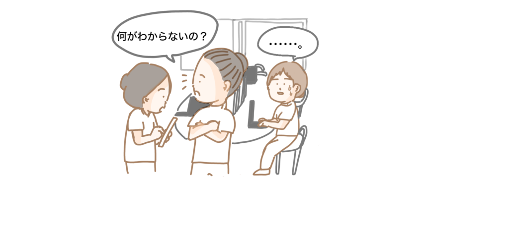 今振り返ると、この時期は「できている部分」と「まだ浅い部分」が混ざって当然の時期です。大切なのは、できていない自分だけを責めるのではなく、できていることを冷静に見つめること。そして、不安な部分について「なぜ不安なのか」「何が理解できていないのか」を少しずつ言葉にしていくことが必要です。しかし、2年目のみなさんにとって「不安や理解できていない部分をどう伝えればいいのか」が一番難しいのかもしれません。だからこそ、不安を”伝えられる形”にする方法が必要です。